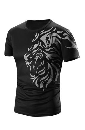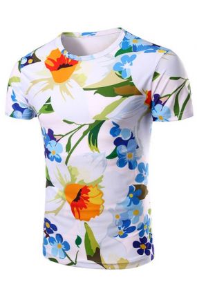 圆领3D多彩飞溅墨水打印短袖男士T恤